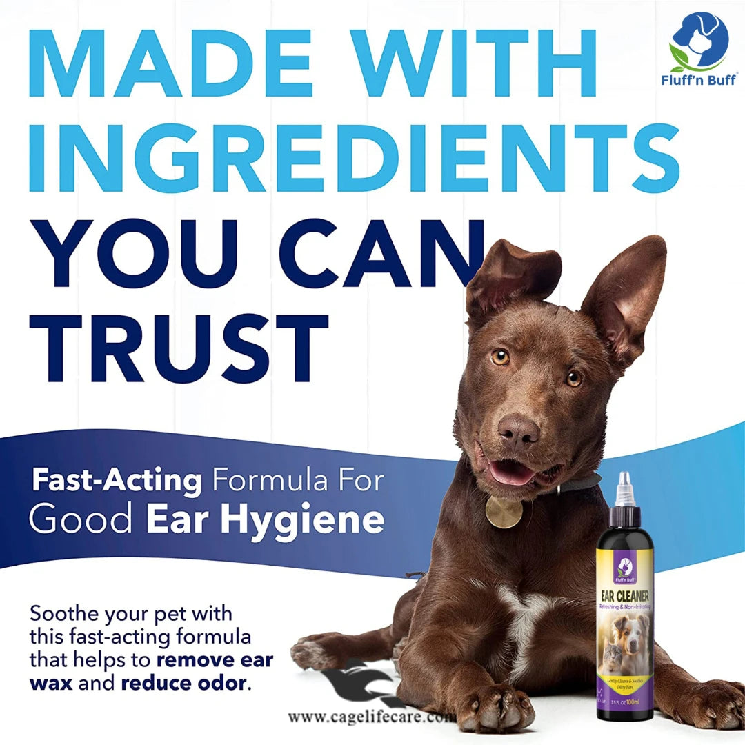 Give your pets the comfort of clean, fresh ears with Fluff n Buff Ear Cleaner (100ml). Shop now at CageLifeCare.com and make ear care simple, safe, and effective.
