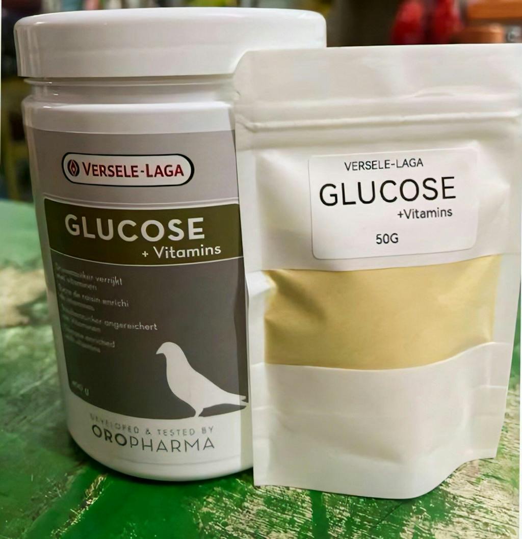 Glucose + Vitamins is an easy-to-use supplement for pigeons that gives them quick energy after flying or being sick. Made with safe, healthy ingredients like sugar and vitamins, it helps pigeons recover fast, drink more water after medicine, and stay strong. Perfect for racing or breeding pigeons, it’s simple to mix with water or tea. A must-have for pigeon owners who want healthy, active birds.