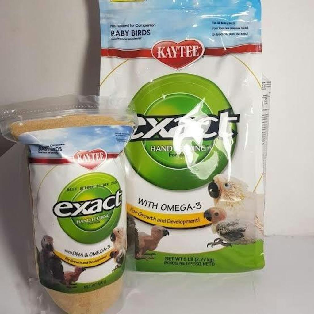 Kaytee Exact Hand Feeding Formula is a premium-quality, veterinarian-recommended formula designed specifically for baby birds. It is one of the most researched and trusted hand-feeding formulas, used by professional breeders, avian veterinarians, and bird conservationists worldwide. This high-nutrient formula promotes rapid growth, healthy development, and vibrant plumage, making it ideal for baby parrots and passerines. Kaytee Exact contains probiotics and digestive enzymes to support gut health, ensuring smooth digestion and a strong immune system.
