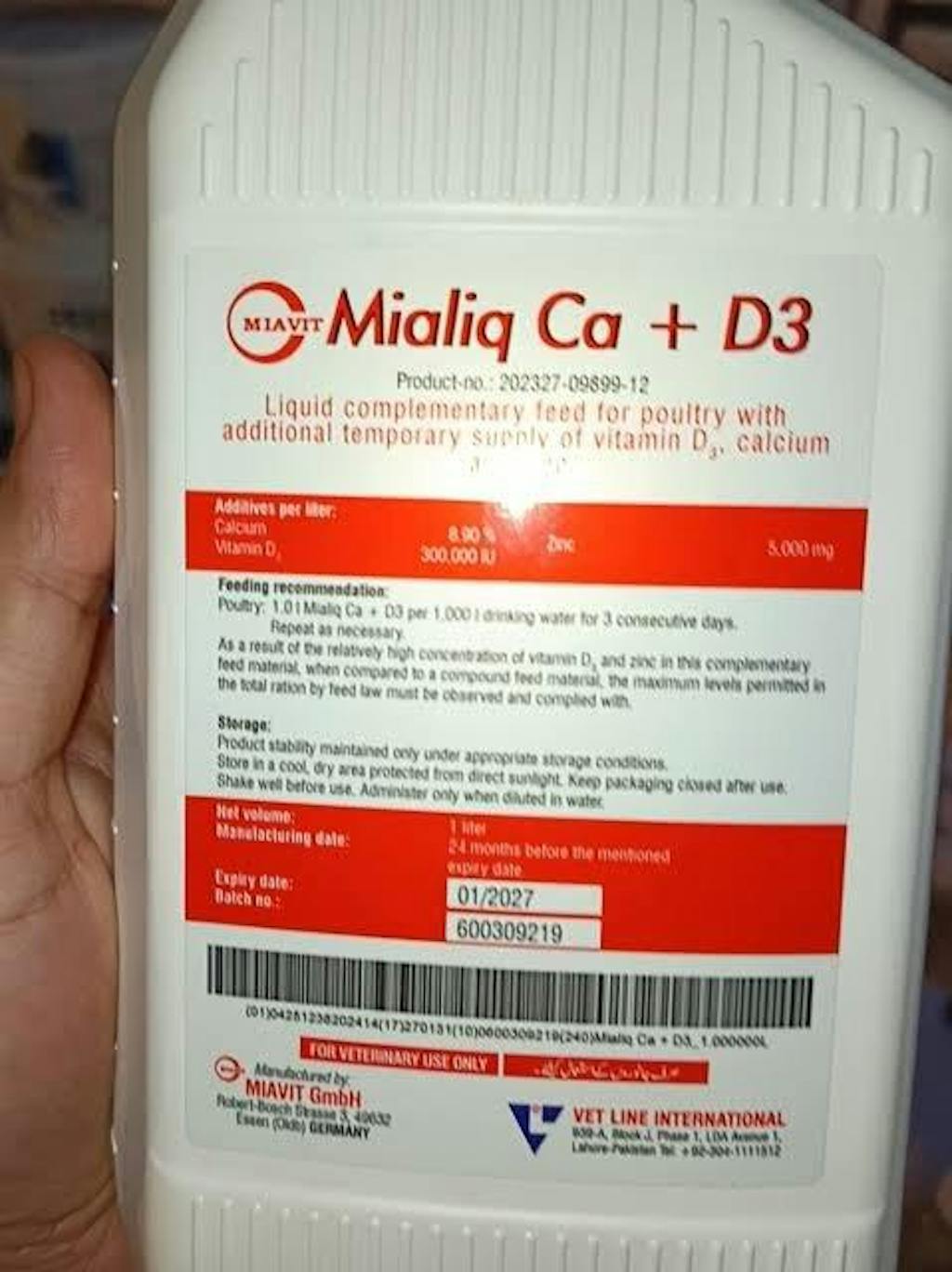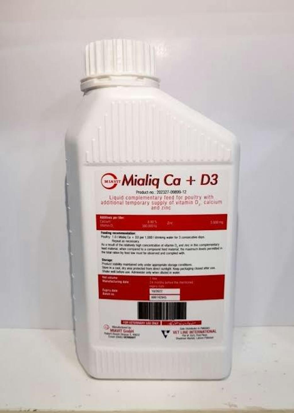 Mialiq CA+D3 is a high-quality liquid complementary feed formulated to provide Vitamin D3, Calcium, and Zinc to poultry and birds. This supplement helps prevent nutrient deficiencies, ensuring strong skeletal development, improved eggshell quality, and enhanced immune function.