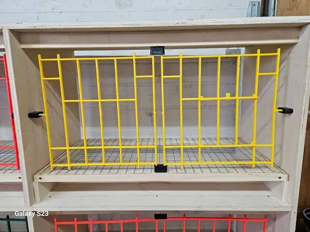 The Pigeon Strong Plywood Nest Box is built for breeding and training pigeons. Crafted from durable plywood with reinforced plastic bars and folding doors, this 32" x 16" x 16" box features a steel grill base and removable panel for easy cleaning. Stackable and quick to assemble, it’s a sturdy, ventilated home for your birds.