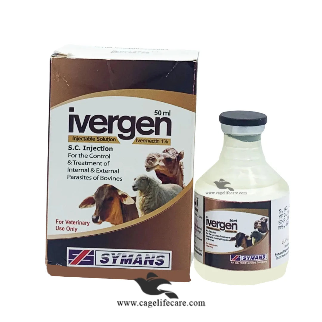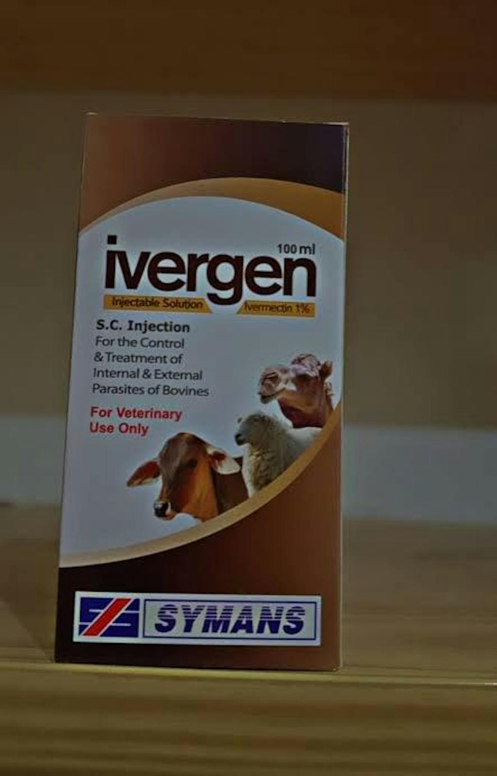 Description: Symans IVERGEN 1% is an injectable solution containing Ivermectin at a concentration of 10mg/ml. It is specifically formulated for the control and treatment of internal and external parasites in bovine livestock.