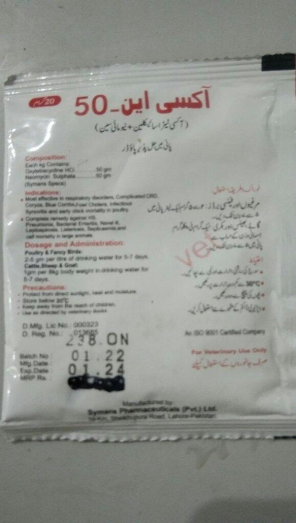 Combat respiratory disorders and bacterial infections in poultry, cattle, sheep, and goats with OXY-N-50, a powerful broad-spectrum antibiotic combining Oxytetracycline and Neomycin Sulphate. This fast-acting solution treats respiratory diseases, septicemia, enteritis, and more, ensuring healthy growth, reduced mortality, and improved livestock health.