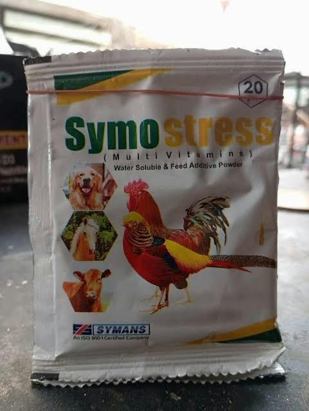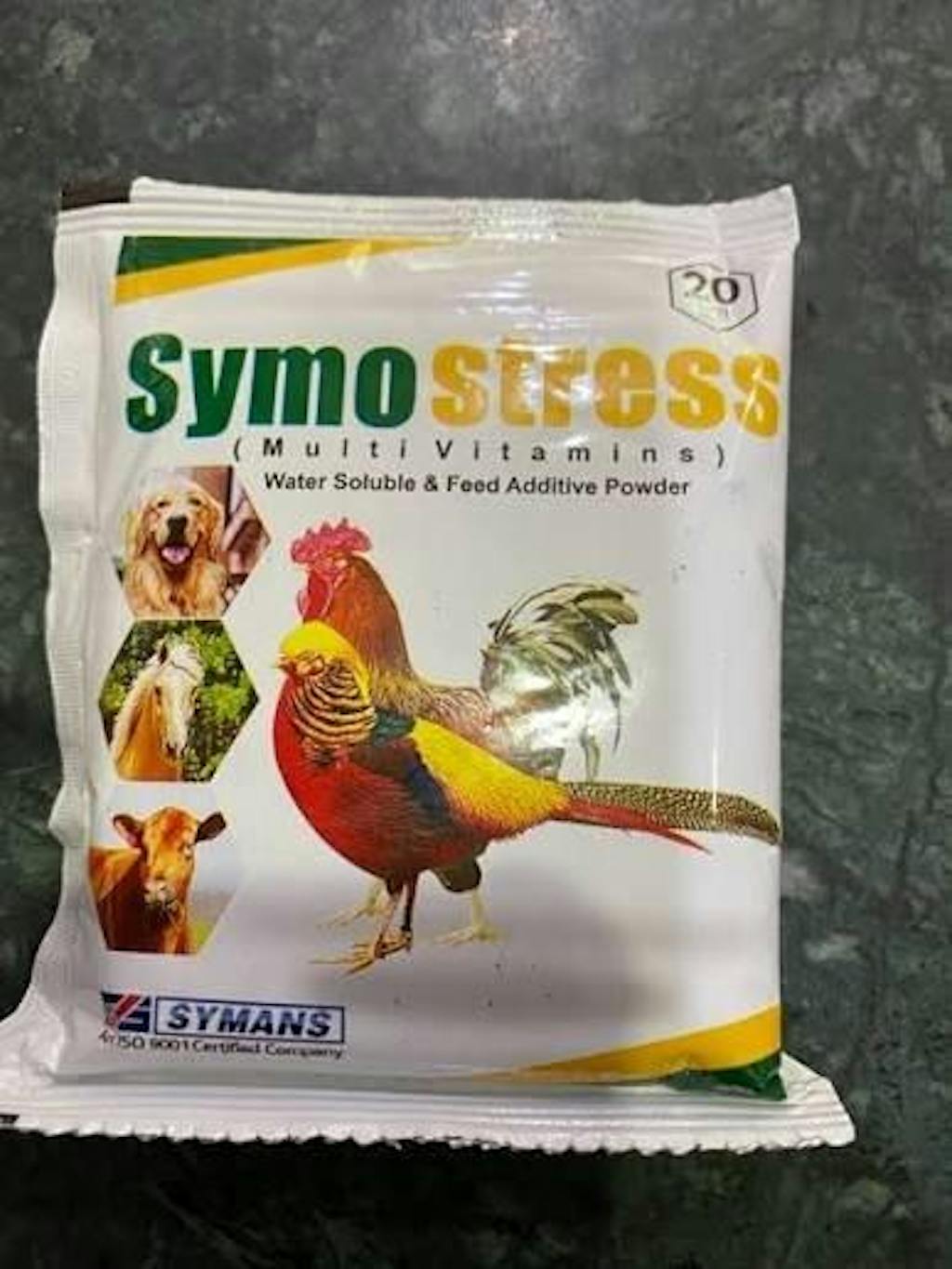 Symostress is a premium vitamin supplement formulated to boost immunity, enhance egg and meat production, improve Feed Conversion Ratio (FCR), and reduce early chick mortality. It provides essential vitamins and nutrients that help poultry and livestock withstand stress, disease challenges, and environmental changes.