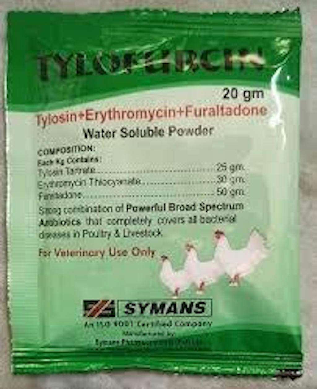 • Tylosin Tartrate: 25g – Effective against Mycoplasma infections and respiratory diseases.