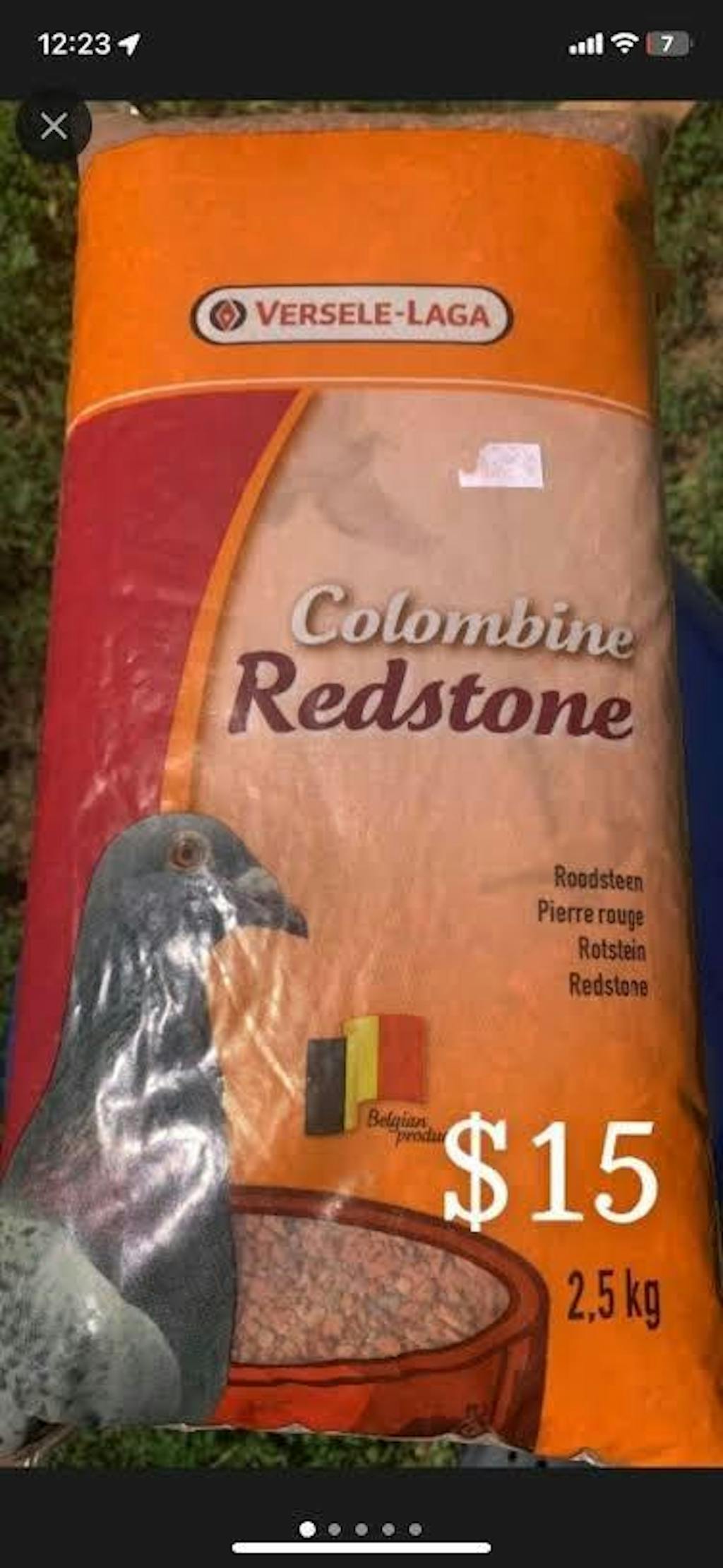 Redstone Pigeon Grit, such as the Colombine Grit + Redstone by Versele-Laga, is a vital dietary supplement for pigeons, enhancing their overall health and digestion.