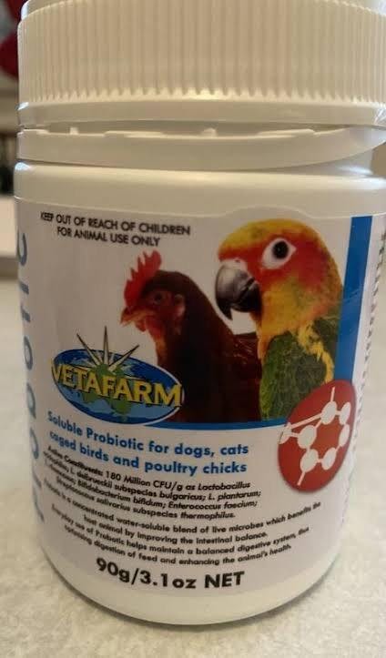 Vetafarm Probiotic is a veterinarian-formulated powdered supplement designed to restore and maintain gut health in birds, poultry, dogs, and cats. This advanced formula contains seven live microbial strains, including Lactobacillus acidophilus and Bifidobacterium bifidum, that naturally replenish gut flora, aid digestion, strengthen immunity, and enhance resistance against digestive infections. It is highly recommended for use after stress, illness, diarrhea, or antibiotic therapy to ensure optimal health and recovery.