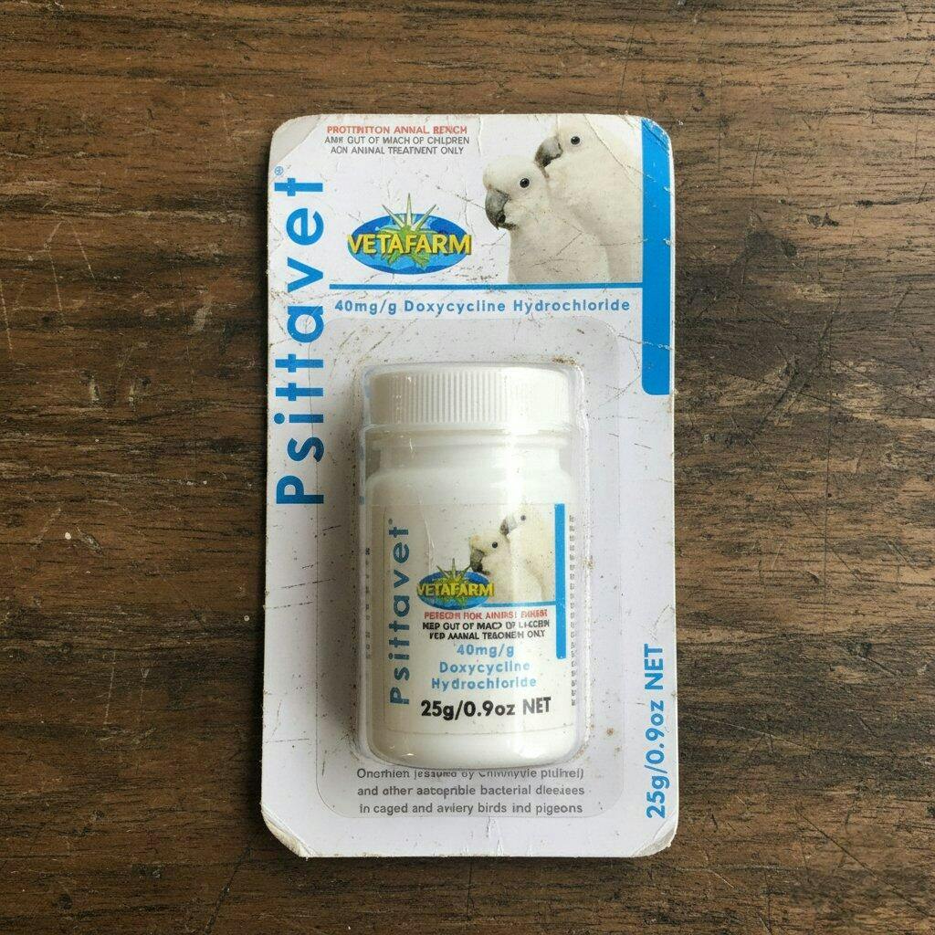 Psittavet Antibiotic Powder by Vetafarm is a veterinarian-formulated treatment designed to combat respiratory infections, such as Psittacosis (Ornithosis), and other bacterial diseases in caged birds, aviary birds, and pigeons. This water-soluble powder contains 40% Doxycycline HCl, a proven antibiotic effective against a wide range of avian bacterial infections.