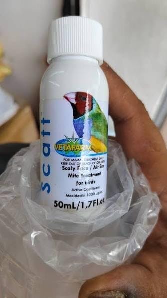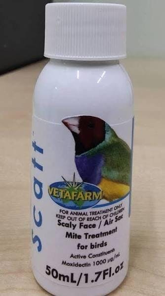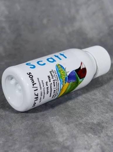 • Scaly Face Mite: Causes crusty lesions on the beak, eyes, and feet. Scatt for birds stops the infestation and aids in healing.