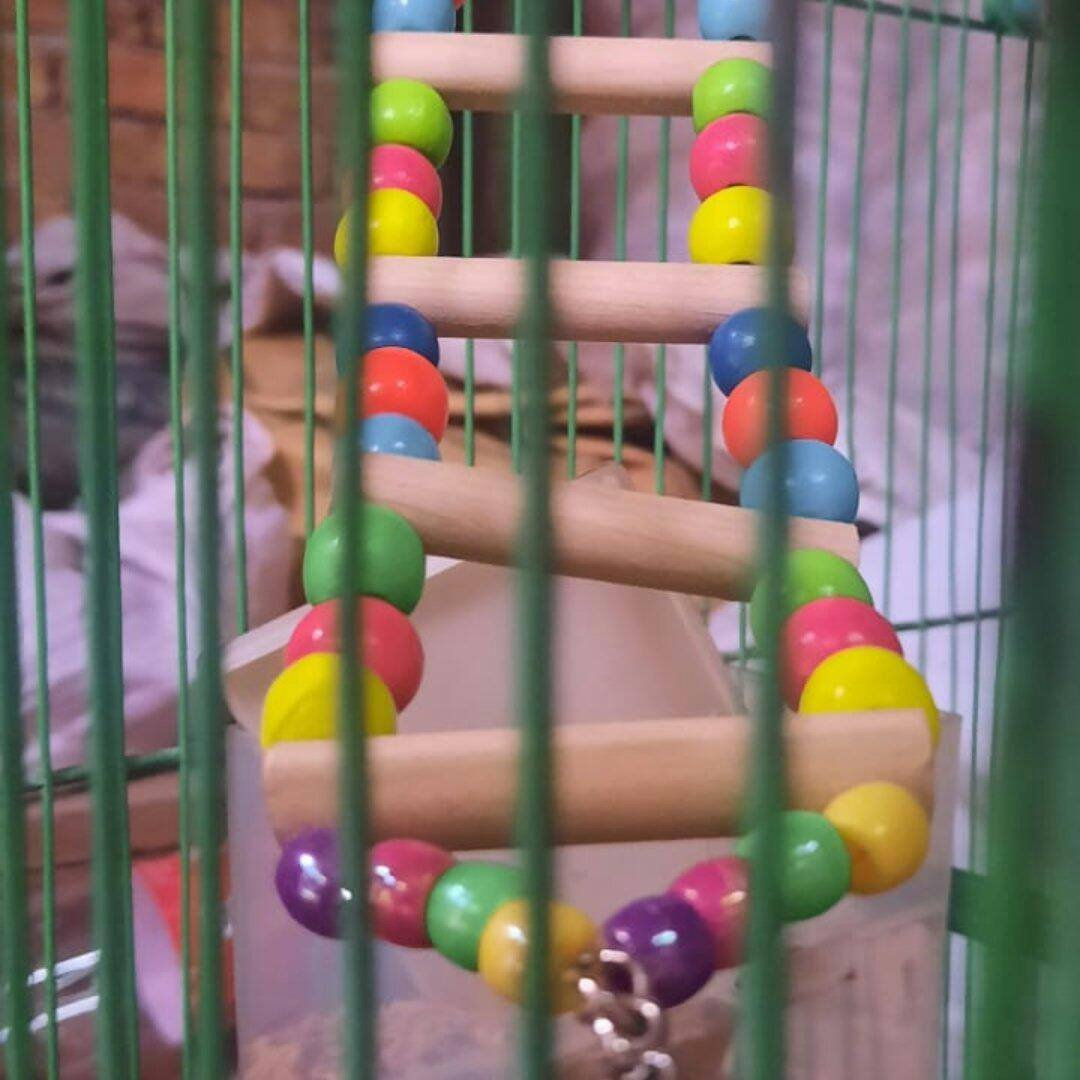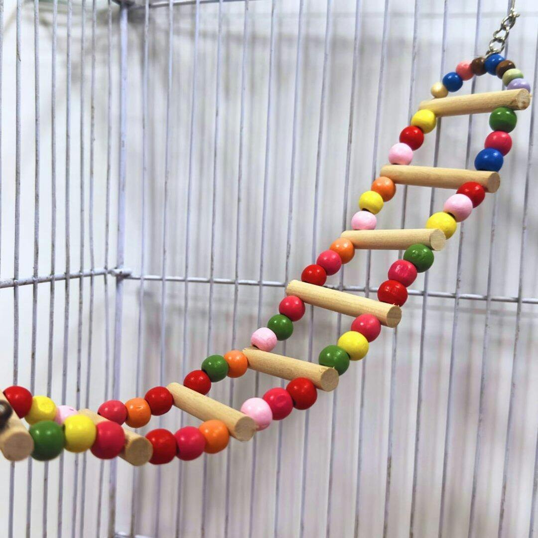 Wooden Ladder Bird Toy – Colorful Climbing Fun for Birds