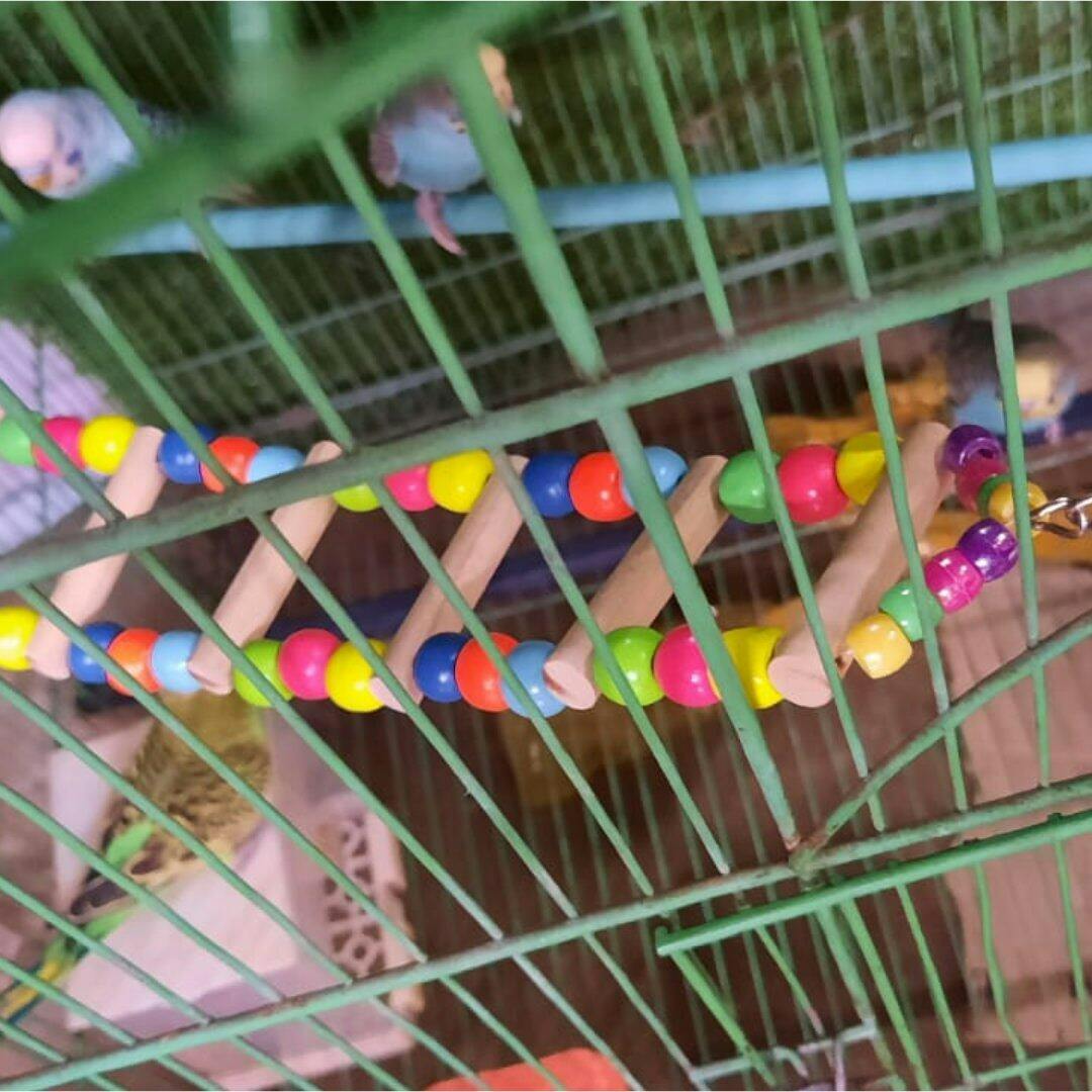 Entertain your parrots, budgies, or finches with this natural wooden ladder. Handmade with safe, colorful bars and metal clasps, it promotes exercise and fun. Perfect for small to medium birds in any cage!